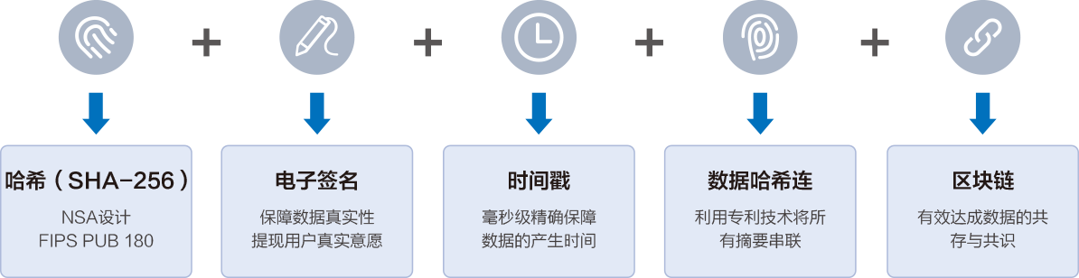 以“哈希加密+可信时间戳+数字签名+哈希串联”为基本框架,以完整、科学、合理且符合司法应用规则的技术与制度流程为保障,实现电子数据证据的固化;兼顾技术的先进性与法律服务的目的性,致力于证据服务,着重解决电子数据证据司法应用难题;服务于金融、政务、医疗、商务交易等领域;固化身份信息、行为痕迹与行为结果,确保身份信息与行为信息的不可否认,确保数据篡改、毁损等行为可被发现。